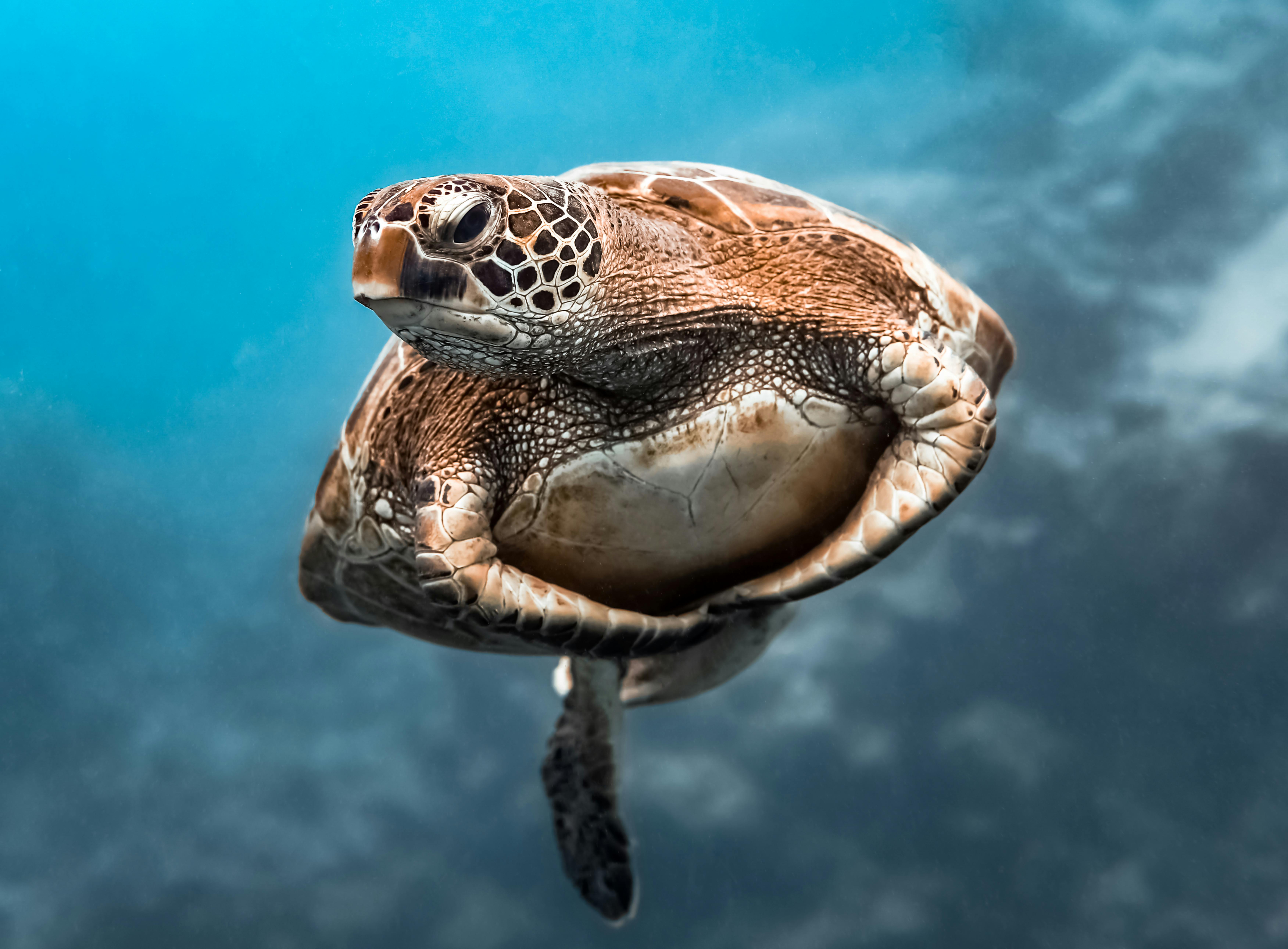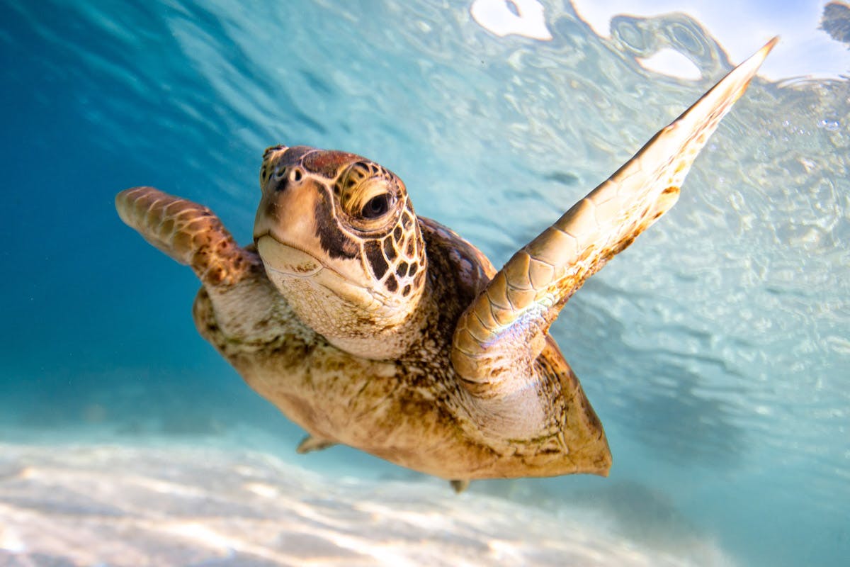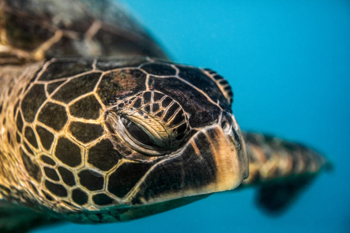 If you are snorkeling close to a sea turtle, take photographs of both sides of its head and of its full body. The heads of sea turtles are covered by dark scales (facial scutes) that are unique to each individual, just like our fingerprints.