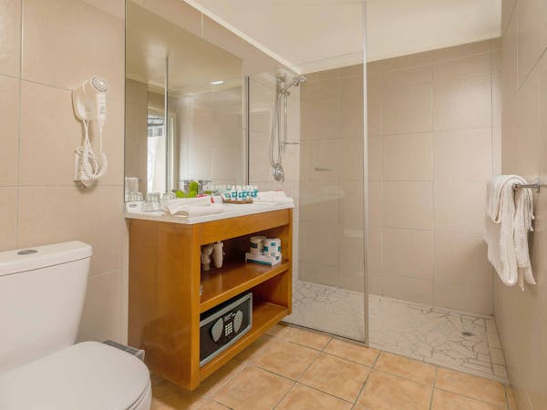 Our tropical-styled Beachside Rooms are less than a minute’s casual stroll to the water’s edge of Aroa Lagoonarium Marine Sanctuary, but without a direct water view.