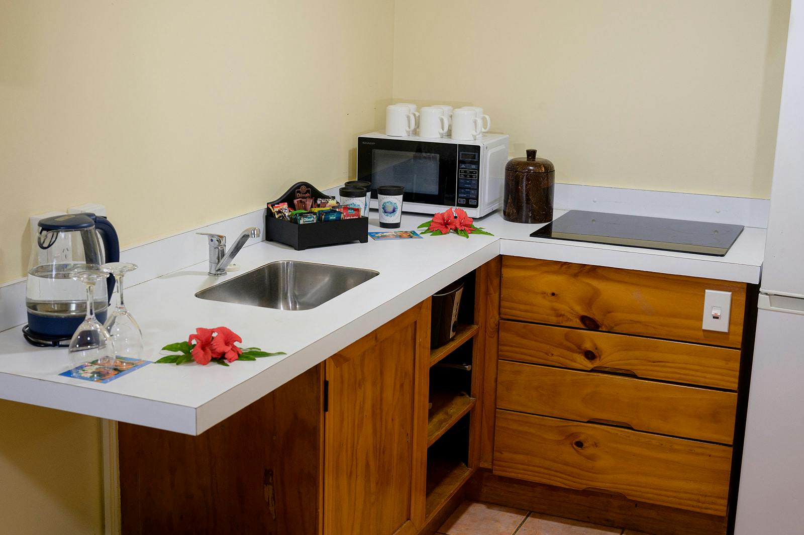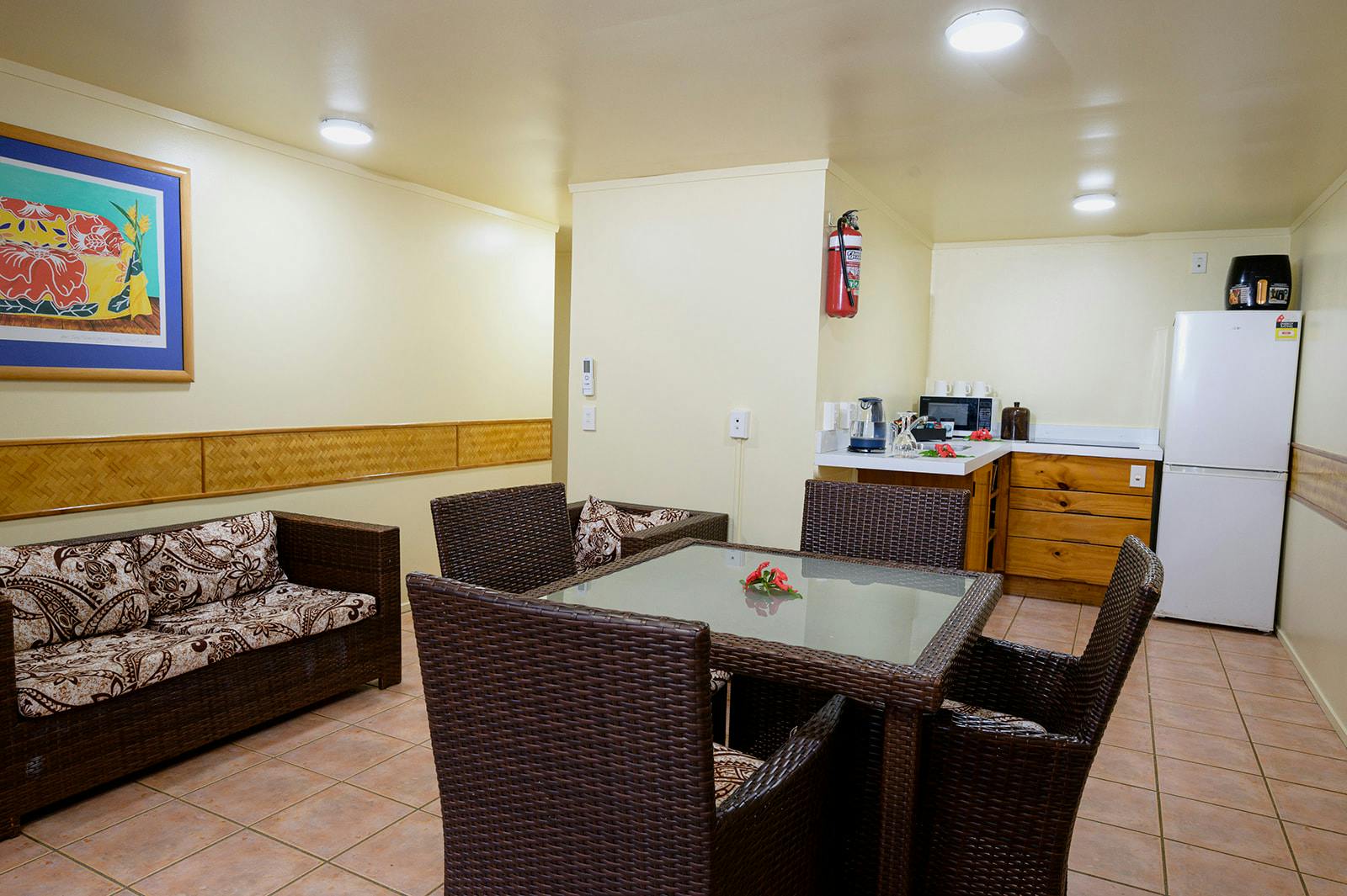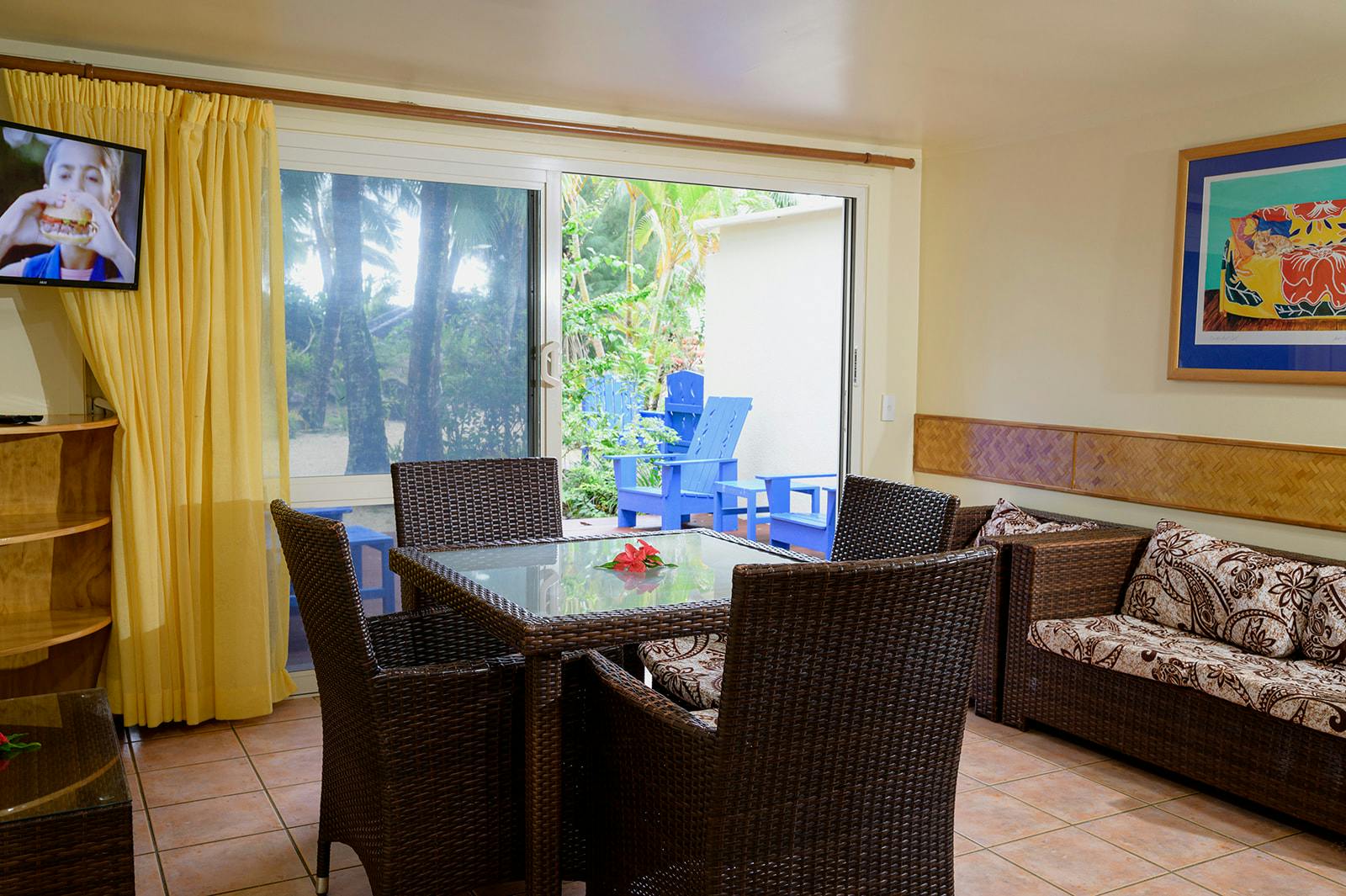 Located just a few steps from the shoreline on Aroa Beach & Lagoonarium, this Suite features 2 Bedrooms + Kitchen / Lounge / Dining Room: