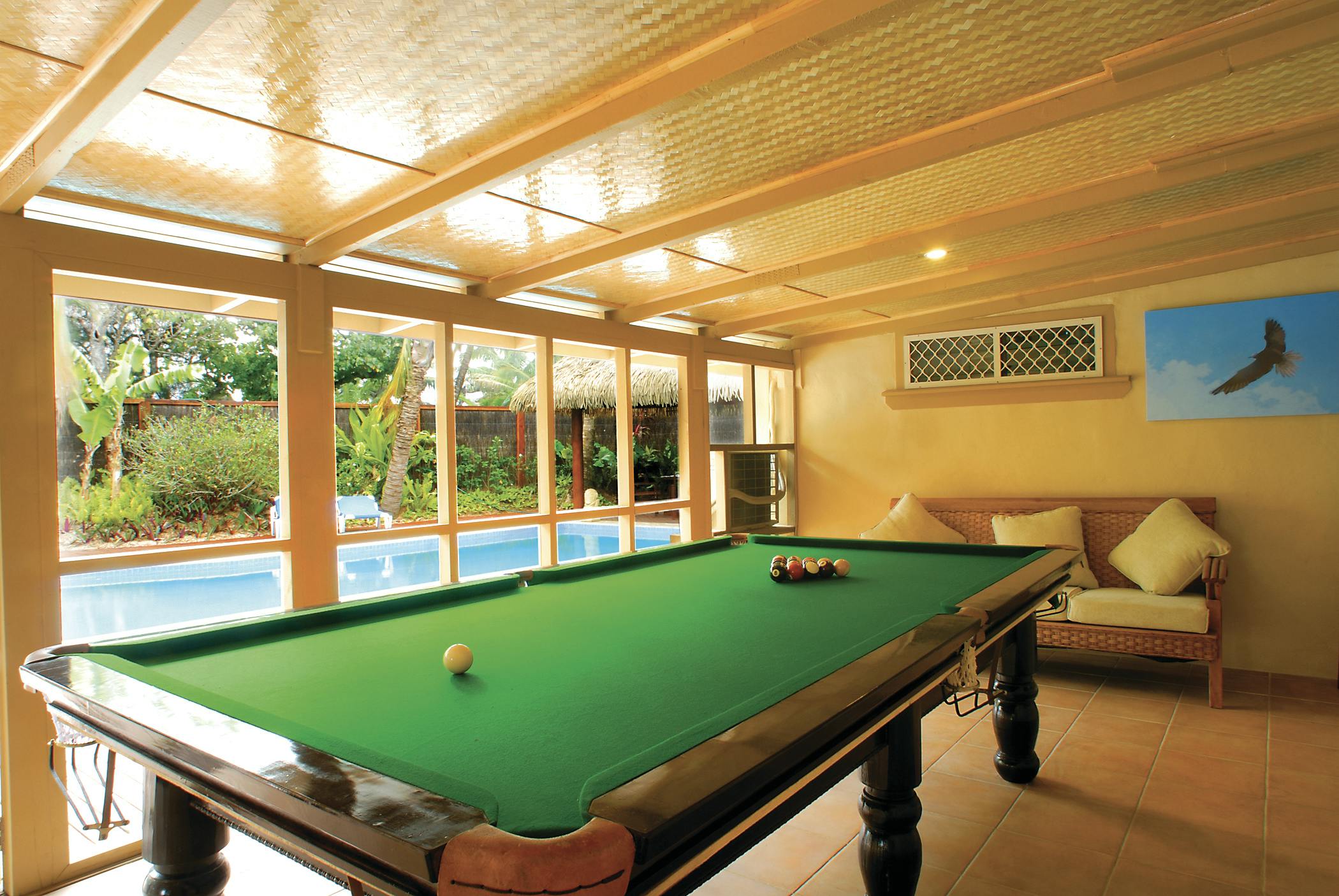 Villa Onemaru offers a Living / Dining room with Home Theatre system, Full Kitchen, Spa Bathroom with large tiled spa bath (in addition to the 2x Ensuite bathrooms), Laundry room, – and the piece de resistance, its own Games Lounge complete with Pool Table, Table Soccer & Board Games.