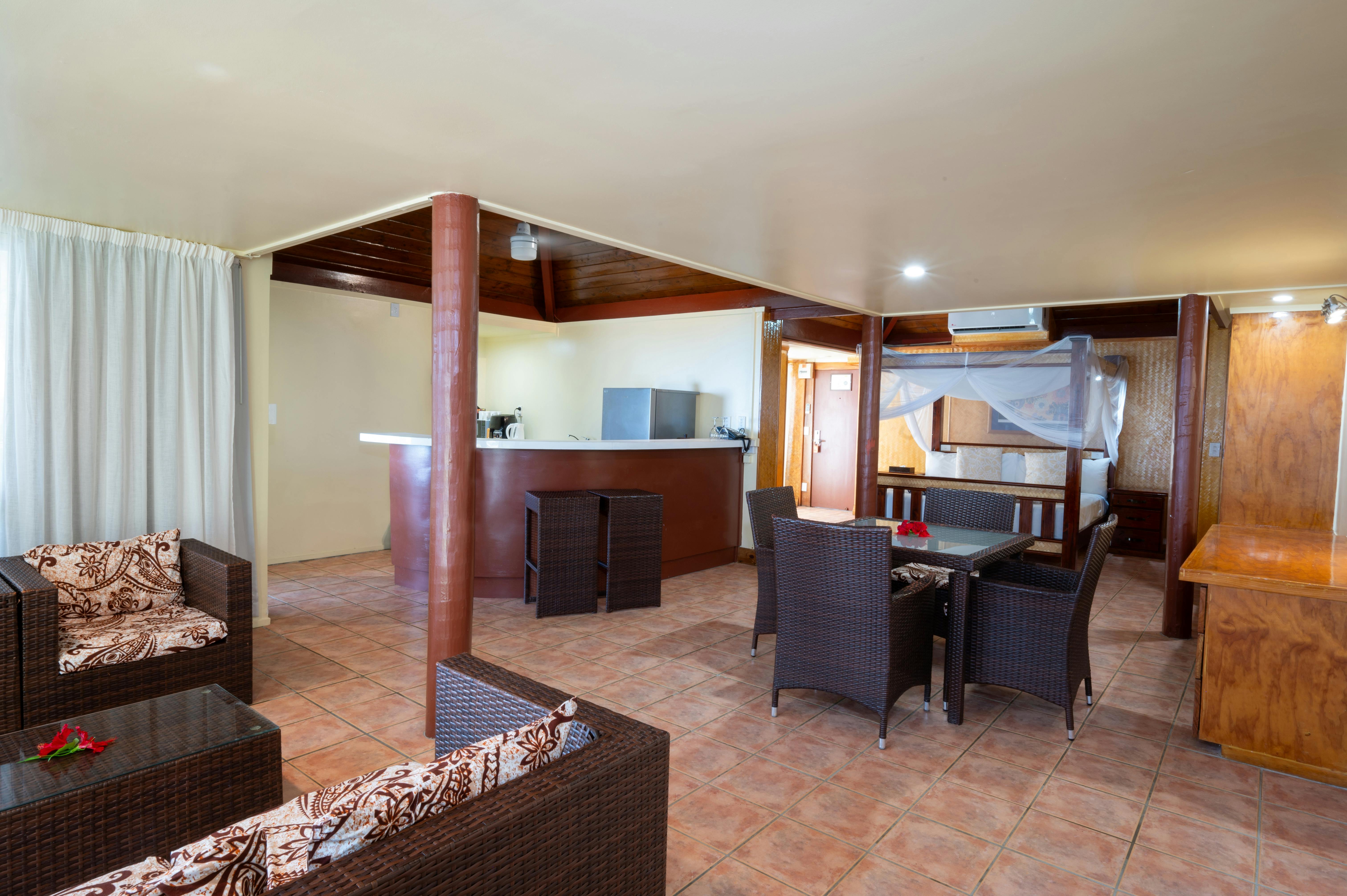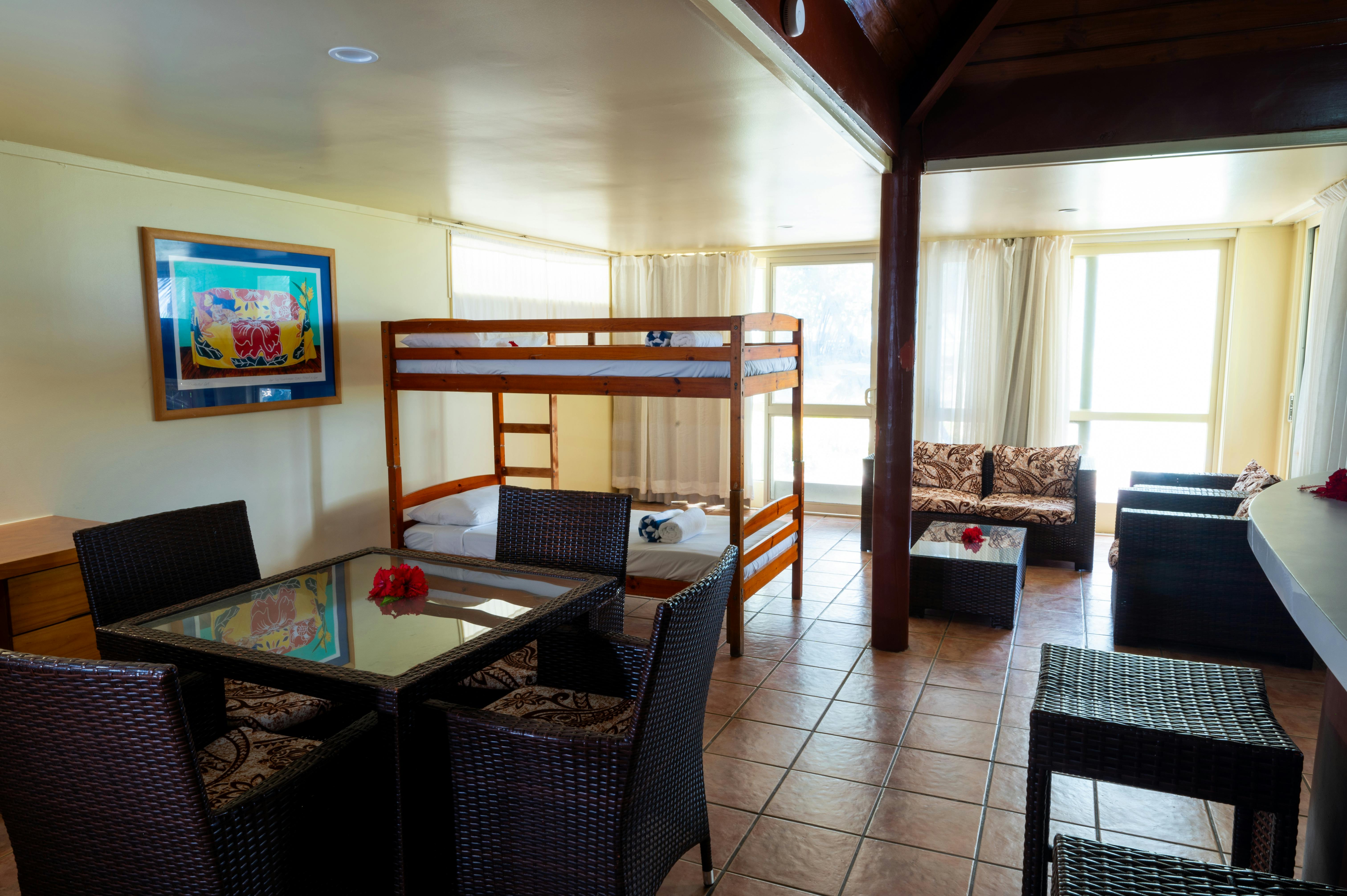 Located on absolute beachfront on the white sands of Aroa Beach, with a direct view of the sparkling blue waters of Aroa Lagoonarium Marine Sanctuary, the Grand Beachfront Suites are perfect for couples or larger families with up to 4 infants / kids or teens to 16 years old and direct access to the beach.