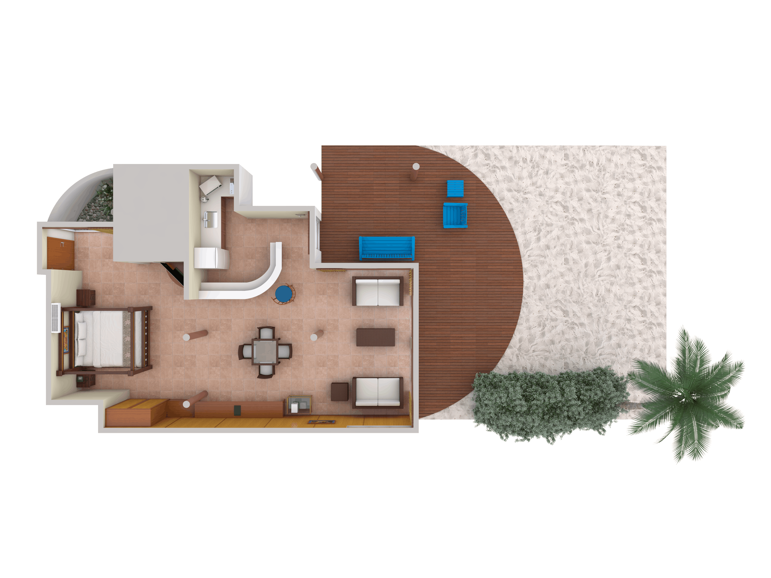 Both Grand Beachfront Suites are just steps from the water’s edge, and all are at beach (ground) level.